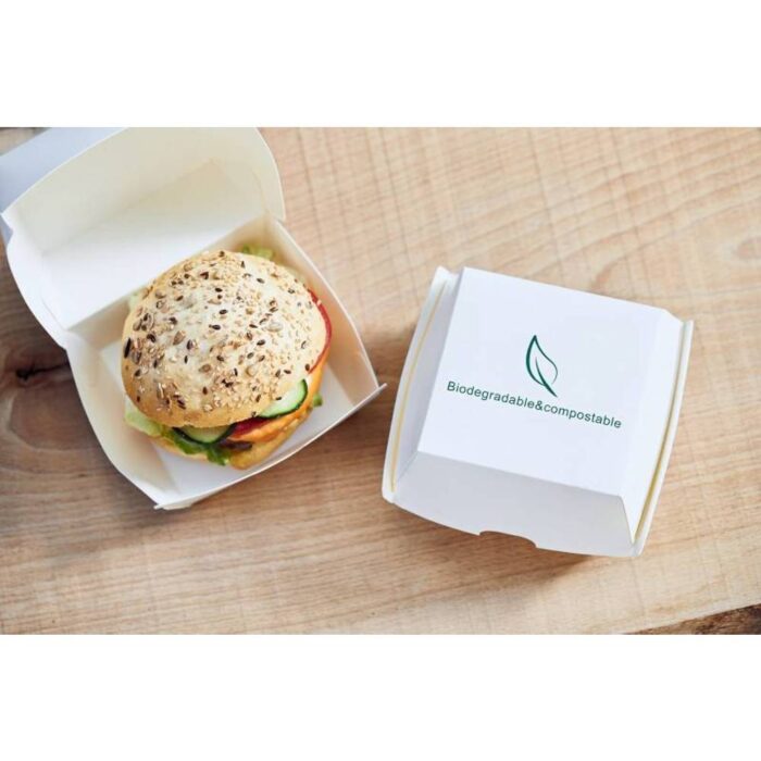 BOX HAMBURGER IN PURA CELLULOSA + PLA COMPOSTABILE, COLORE BIANCO