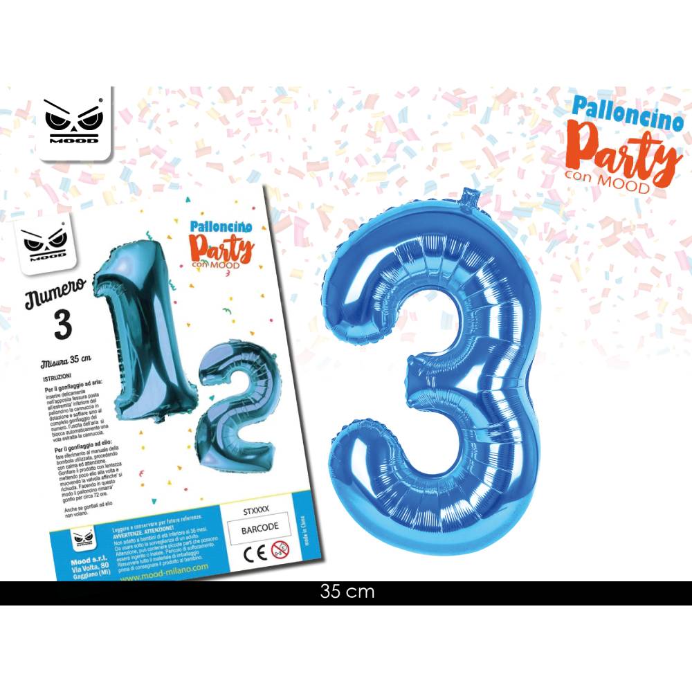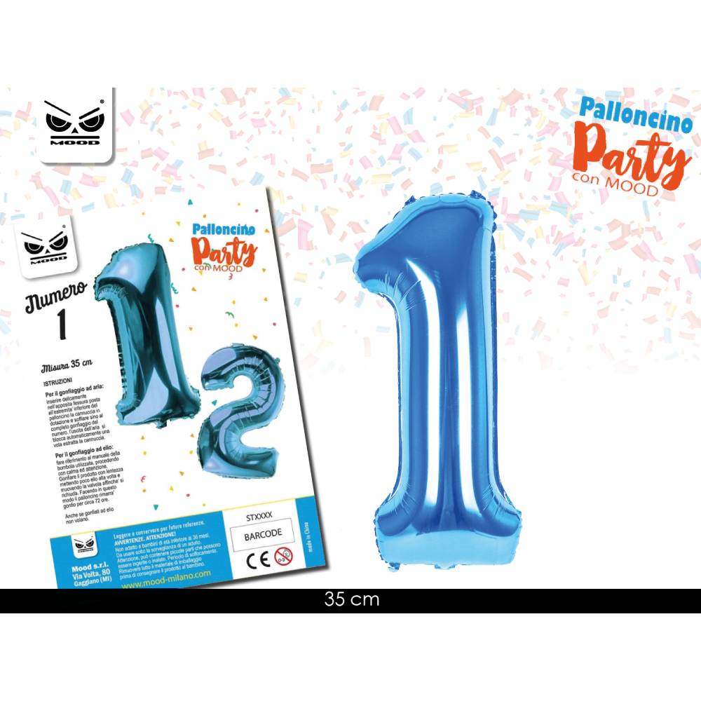 METAL BALLON NUMERO LIGHT BLUE 35 CM